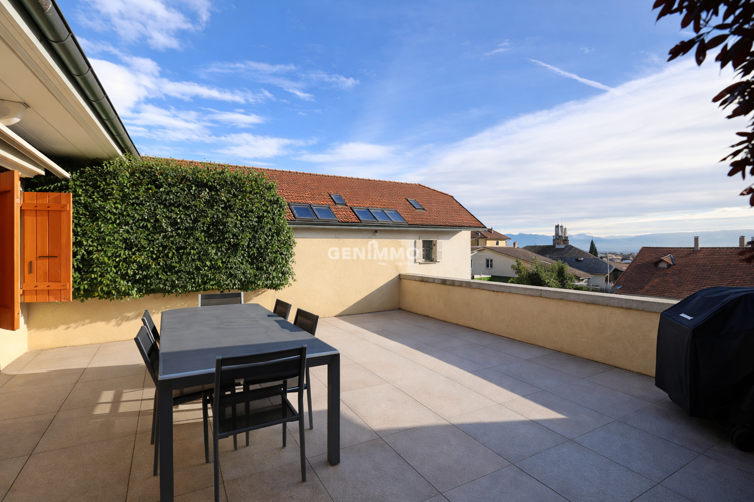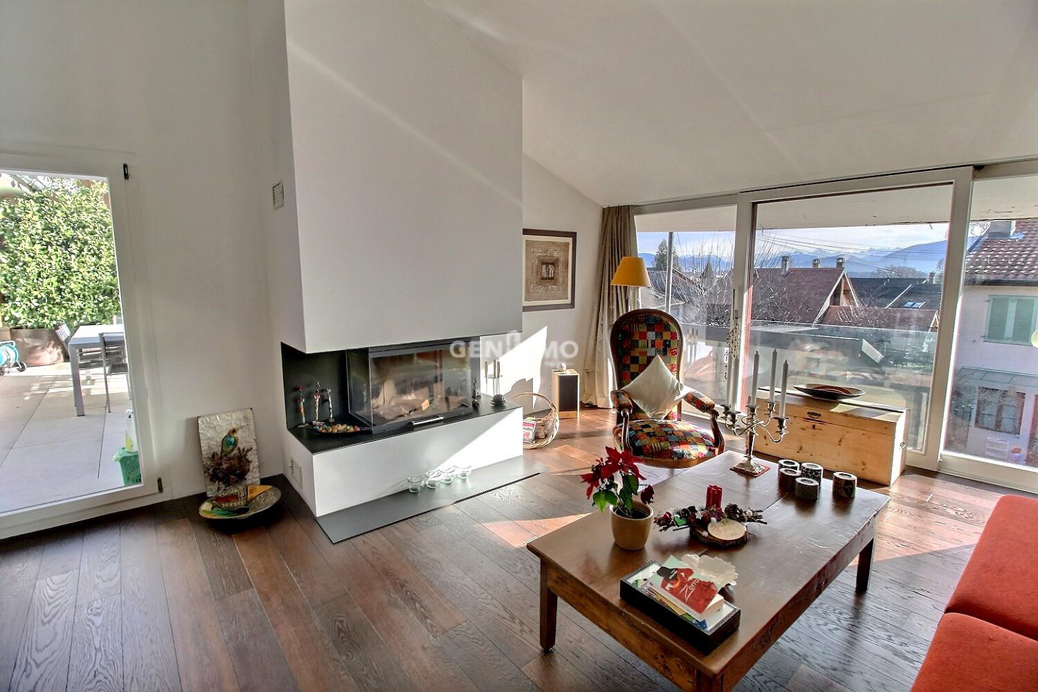 Located in the heart of the village of Bourdigny, in the municipality of Satigny, this triplex apartment enhanced by an independent studio of approximately 15 m² is part of a condominium offering calm and privacy.